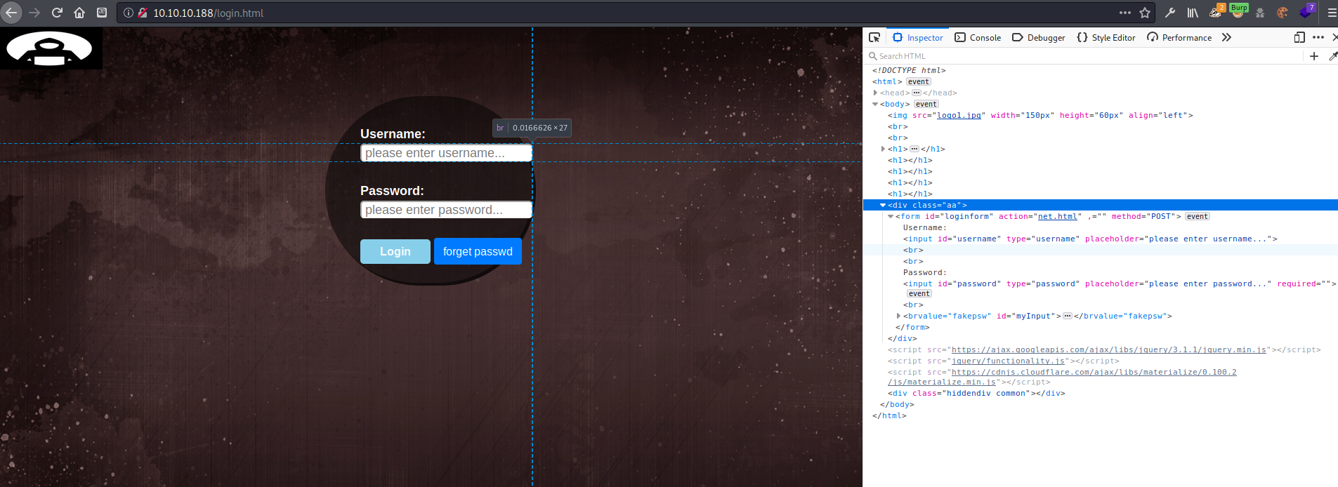 login.html seems to be rabbit hole. Never attempts to actually send data.