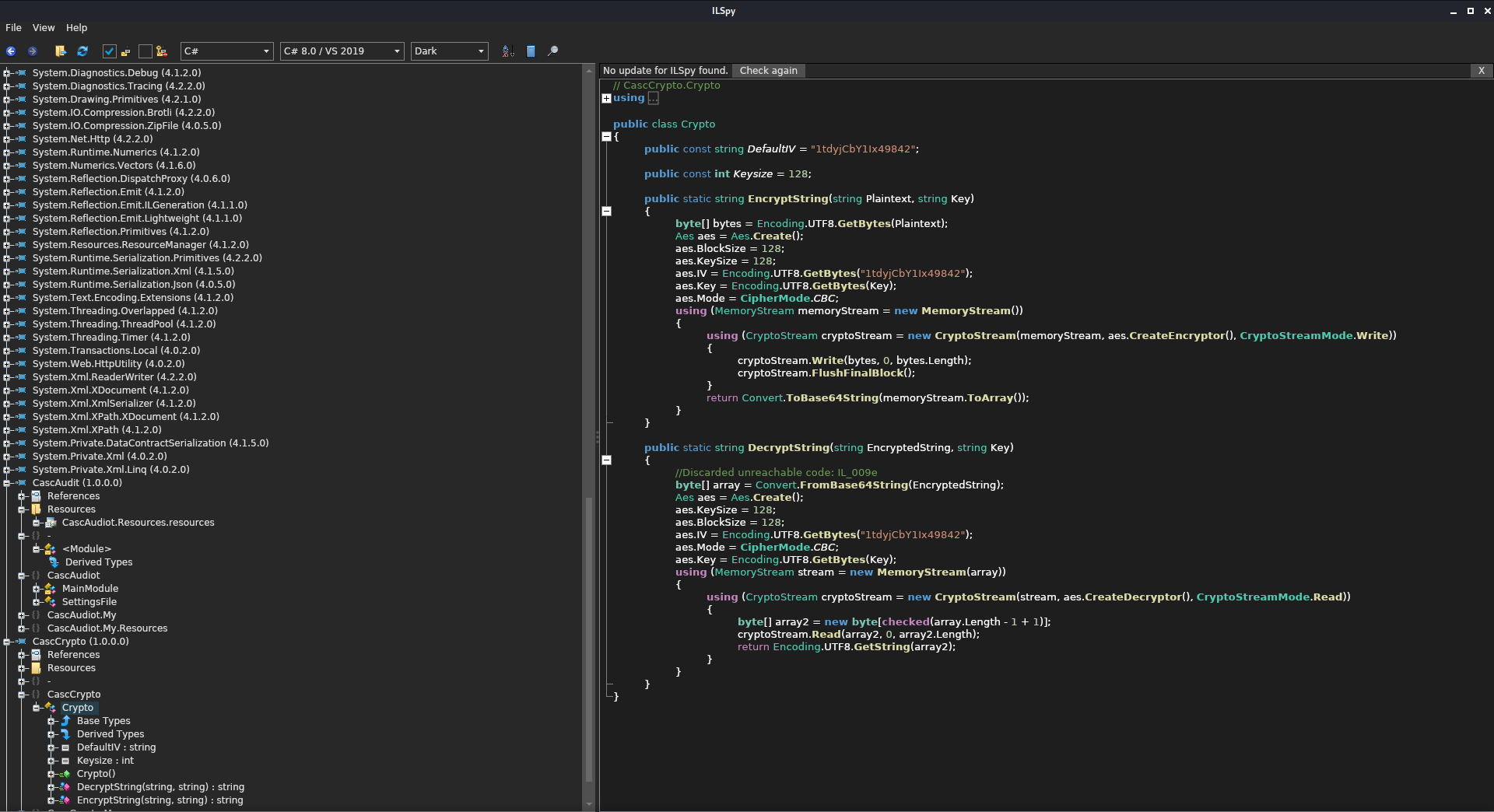 Binaries written in .NET languages (such as C#) are fairly simple to break down to the original source code with https://github.com/icsharpcode/AvaloniaILSpy.