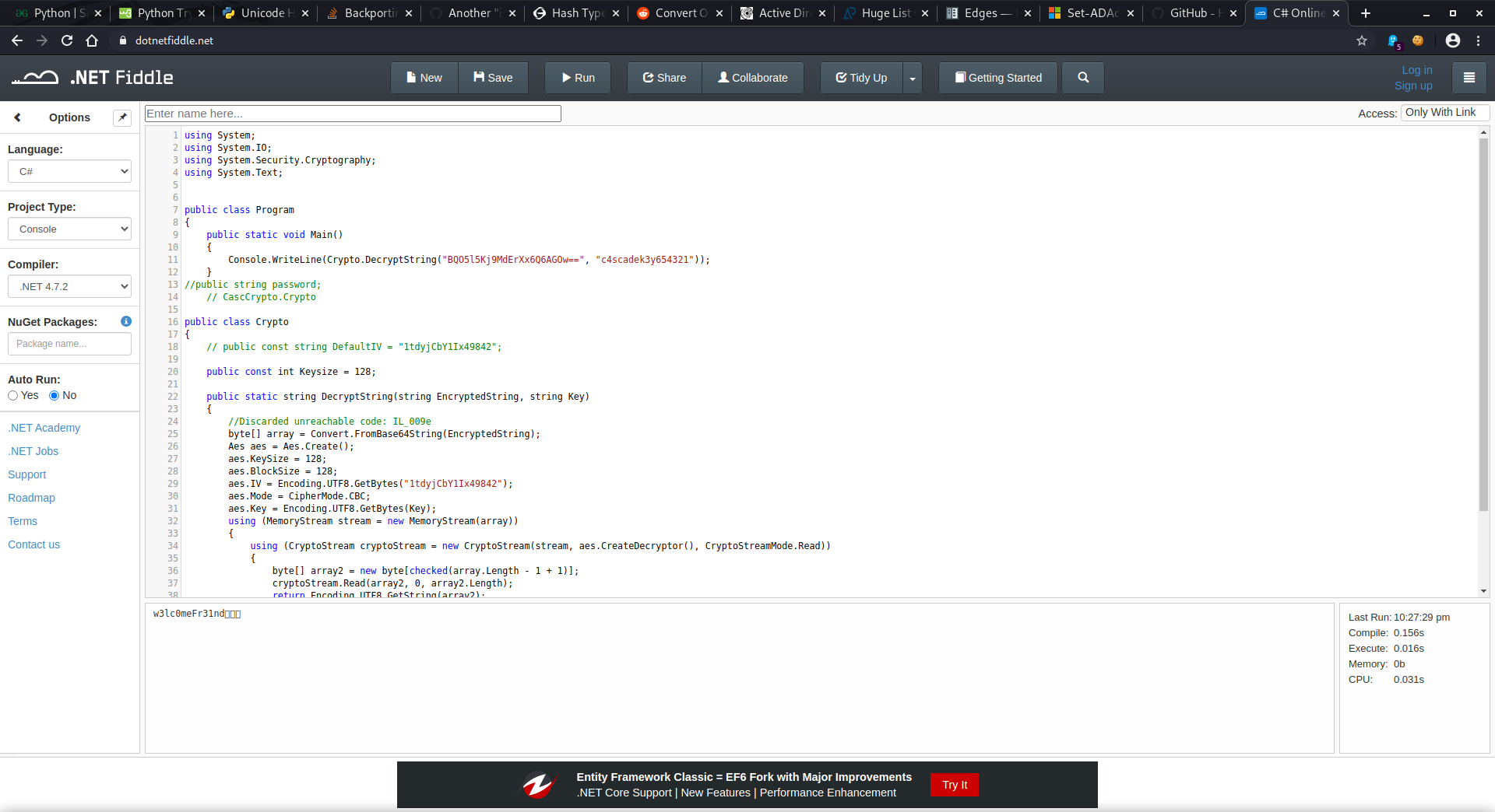 To quickly compile and run any kind of .NET code on the go without having to install Visual Studio and the proper dependencies, I highly recommend the website https://dotnetfiddle.net/