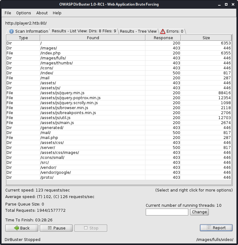 wfuzz -X GET -w <wordlist> --sc 200 -c http://player2.htb/proto/FUZZ.proto