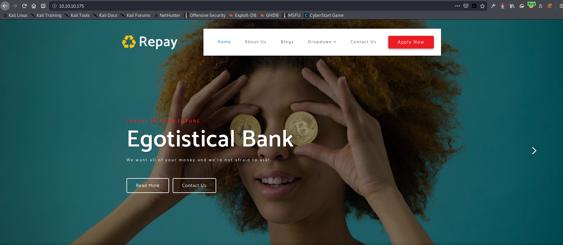 I started my enumeration with an nmap scan of 10.10.10.175. The options I regularly use are: