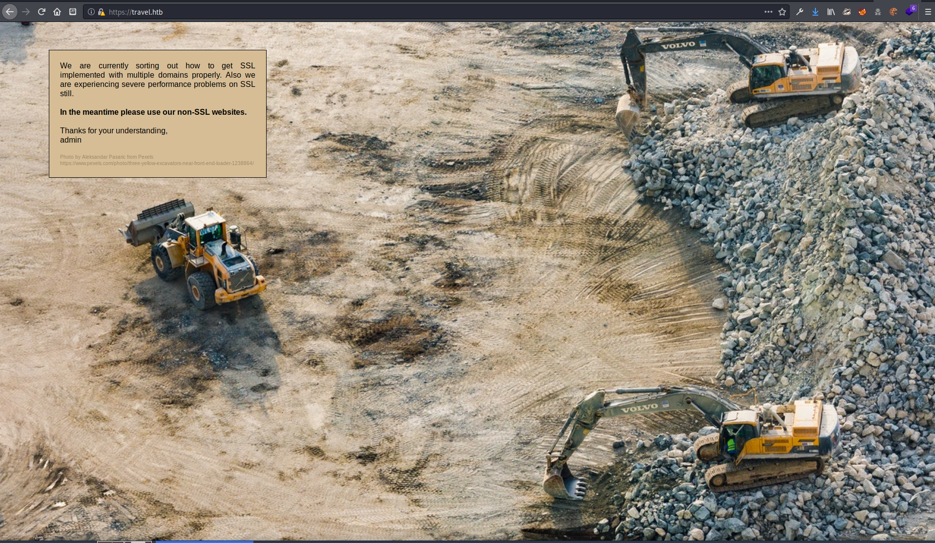 | Issuer: commonName=www.travel.htb/organizationName=Travel.HTB/countryName=UK