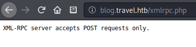 [+] XML-RPC seems to be enabled: http://blog.travel.htb/xmlrpc.php