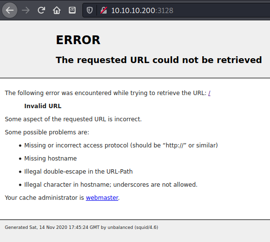 three ports open, 22-SSH, 873 - Rsync, and 3128 which was identfied as an HTTP Squid proxy