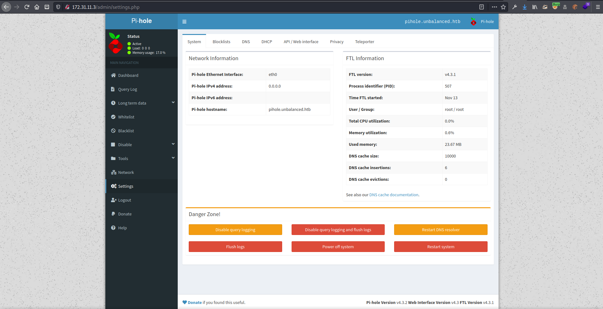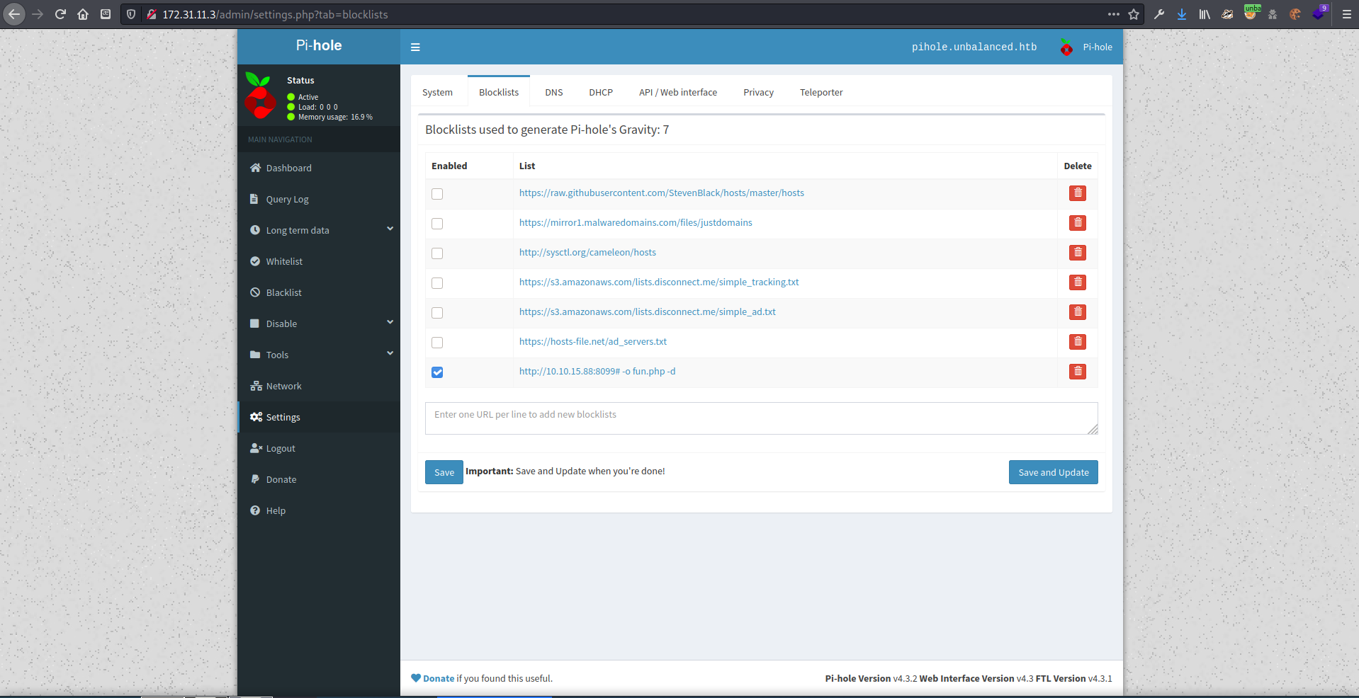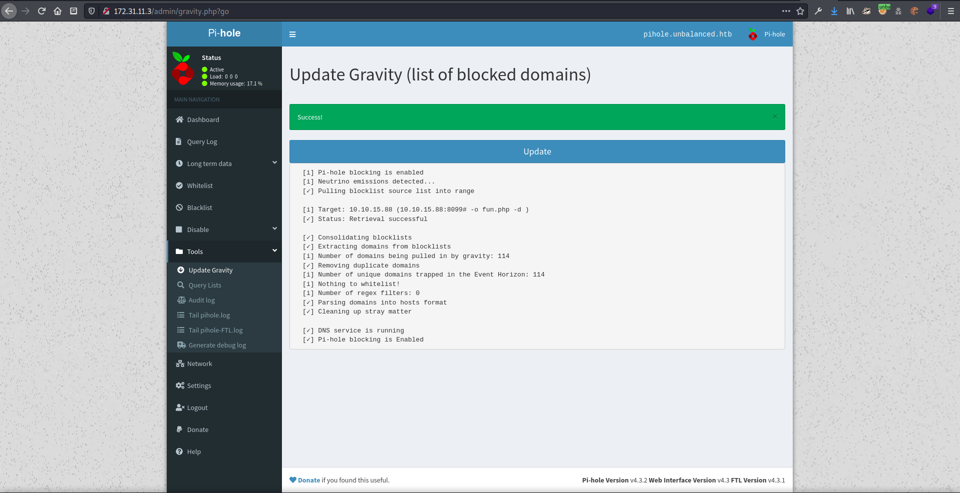 Linux pihole.unbalanced.htb 4.19.0-9-amd64 #1 SMP Debian 4.19.118-2+deb10u1 (2020-06-07) x86_64 GNU/Linux